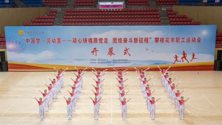2月24日上午,由攀枝花市總工會舉辦的“中國夢·勞動美——凝心鑄魂跟黨走 團(tuán)結(jié)奮斗新征程”第一屆職工運(yùn)動會在市體育館隆重開幕。集團(tuán)公司與全市各縣(區(qū))總工會、大企業(yè)工會、行業(yè)工會在9個比賽項(xiàng)目中同場競技、比拼實(shí)力。在開幕式當(dāng)天廣播體操比賽中,集團(tuán)公司參賽隊(duì)從12支隊(duì)伍中脫穎而出,以95.9的最高分奪得該項(xiàng)目的冠軍。