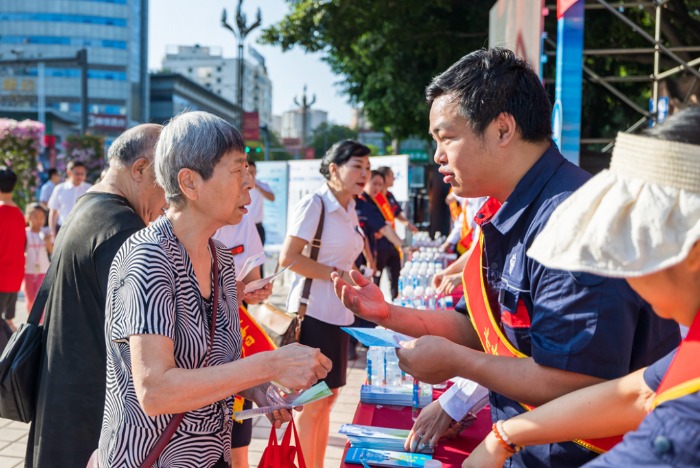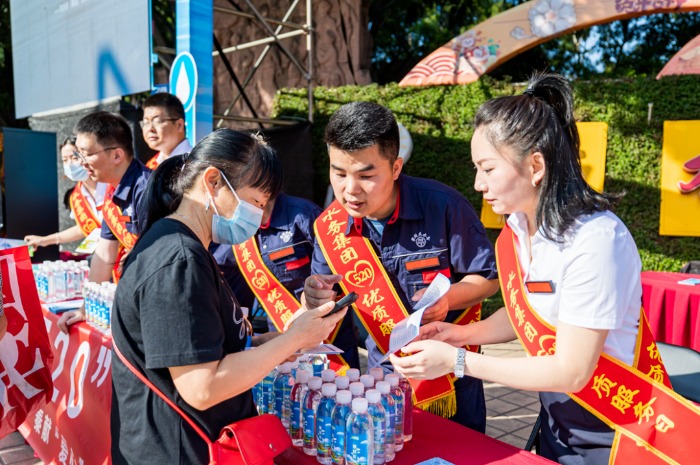 上午8時(shí),設(shè)置在竹湖園廣場(chǎng)的“520”便民服務(wù)點(diǎn),熱鬧不已,炳草崗水廠、怡康飲用水有限公司共產(chǎn)黨員服務(wù)隊(duì)、青年志愿者服務(wù)隊(duì)的隊(duì)員們,禮貌熱情地向群眾介紹集團(tuán)公司“520”服務(wù)品牌建設(shè)理念,發(fā)放“520”民生服務(wù)承諾、現(xiàn)行水價(jià)政策、用水節(jié)水常識(shí)等宣傳資料,對(duì)群眾關(guān)心的水質(zhì)、水壓、抄表、收費(fèi)等問題進(jìn)行耐心細(xì)致的逐一解答。